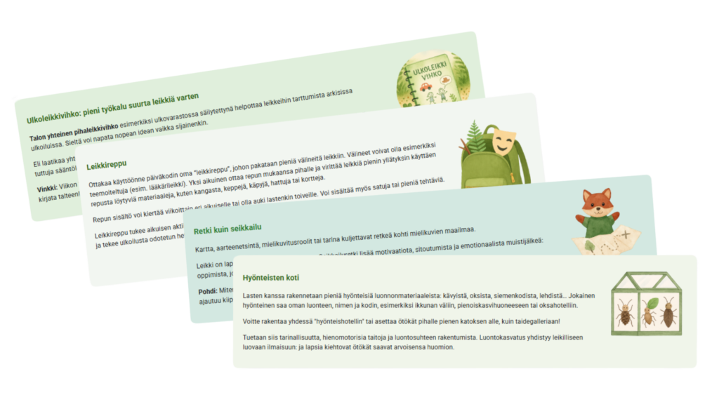 - Kehittää ulkoilutilanteista pedagogisesti arvokkaita!